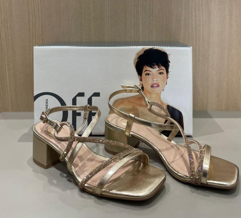 Sandália Offline Feminina Salto Médio 565324202 Dourada 48786